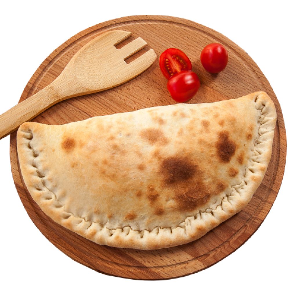 Dubbelgevouwen pizza met tomatensaus en kaas
