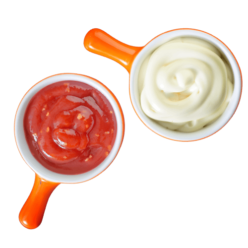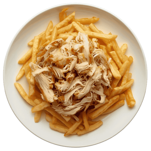 kip met frieten of rijst, groenten, mozzarella en tomatensaus